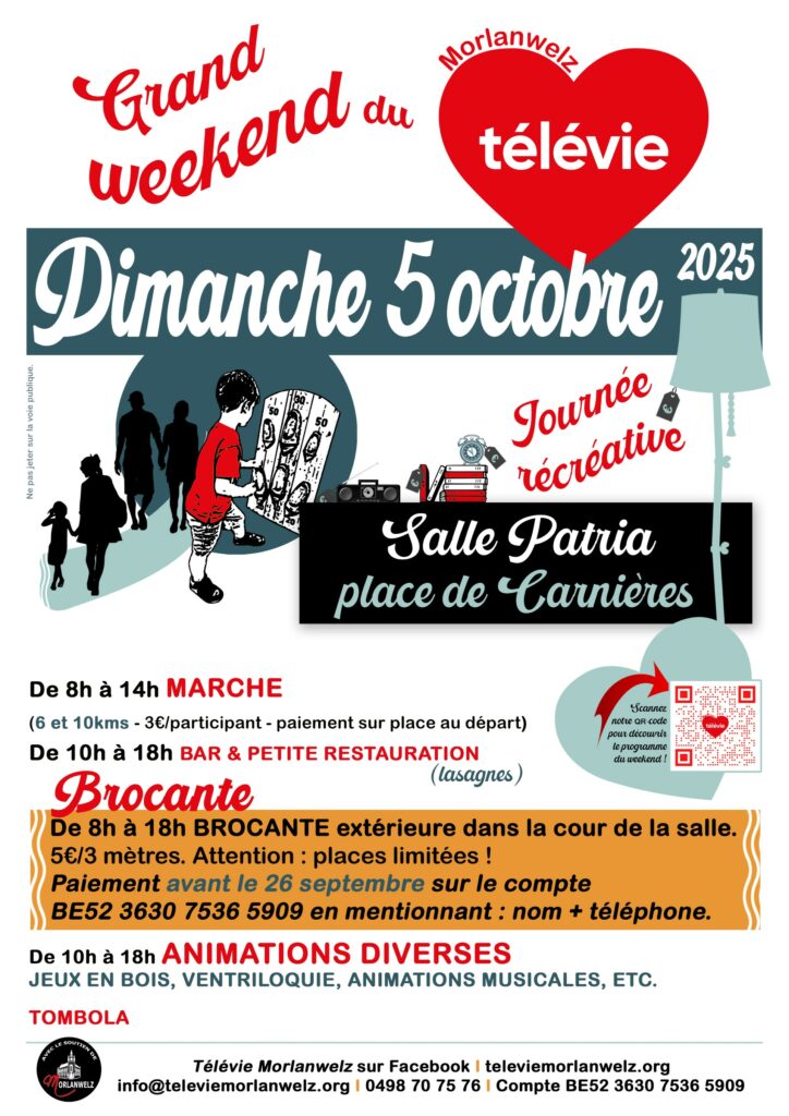 Le Télévie est présent à Morlanwelz depuis un peu plus de 10 ans, initialement poussé par Pascal et François. Brigitte les a rejoints en 2017, Jean-Pierre en 2018 et Geoffrey plus récemment. Cela a permis de réaliser plus d’activités, d’augmenter notre présence dans les commerces ou marchés locaux et quelques extras comme la vente de sachets de bonbons à la Saint-Nicolas ou la confection de galettes des rois.